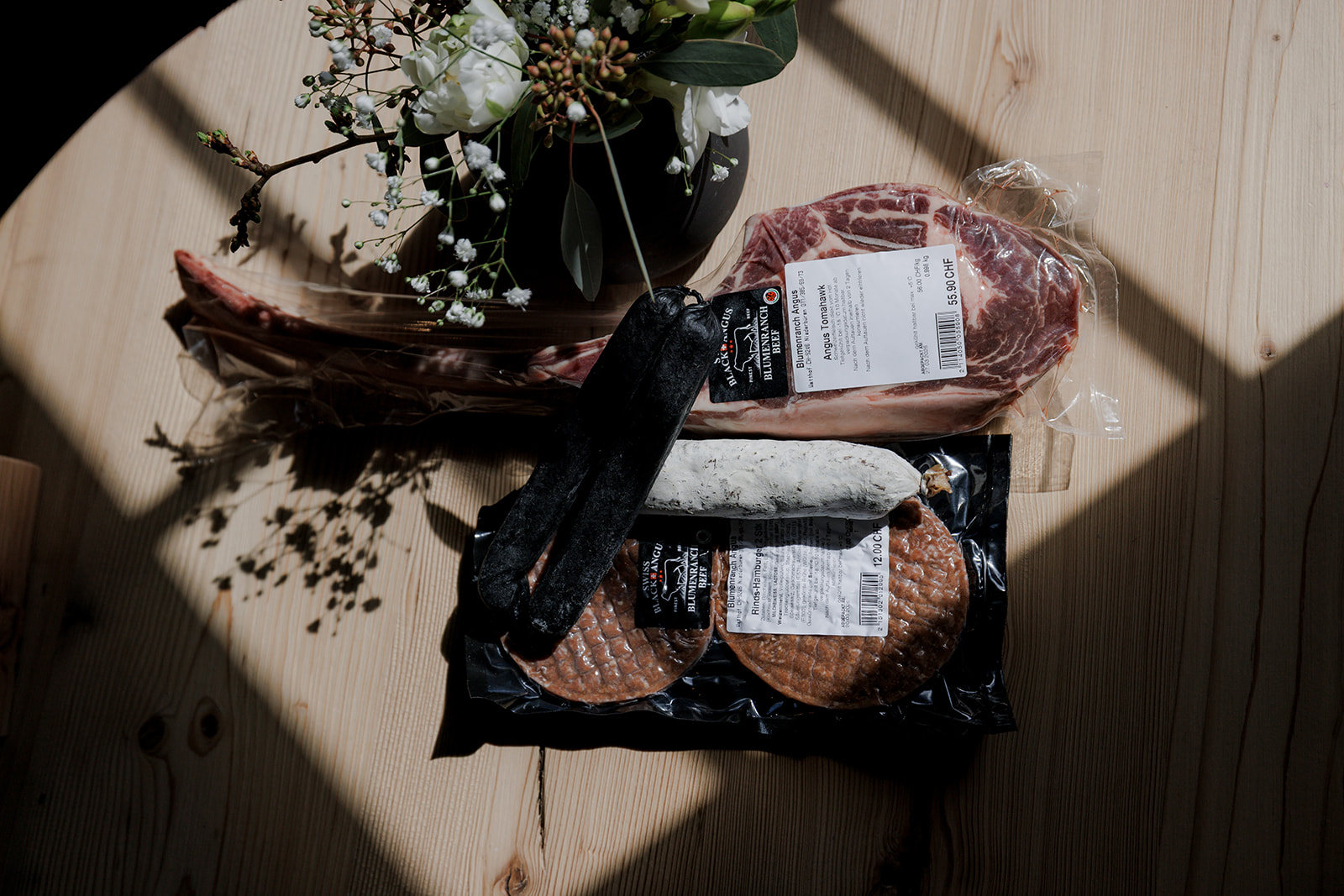 Das Rindfleisch, das wir mit der Mutterkuhhaltung auf der Blumenranch produzieren, trägt das Label Swiss Black Angus. Das Label steht für hochwertiges Qualitäts Rindfleisch der Rasse Angus aus Schweizer Mutterkuhhaltung. Die Wertschöpfungskette Swiss Black Angus verfolgt höchste Ansprüche bezüglich der Qualität des Fleisches, der Nachhaltigkeit der Produktionsmethoden, des Tierwohls und der Rückverfolgbarkeit